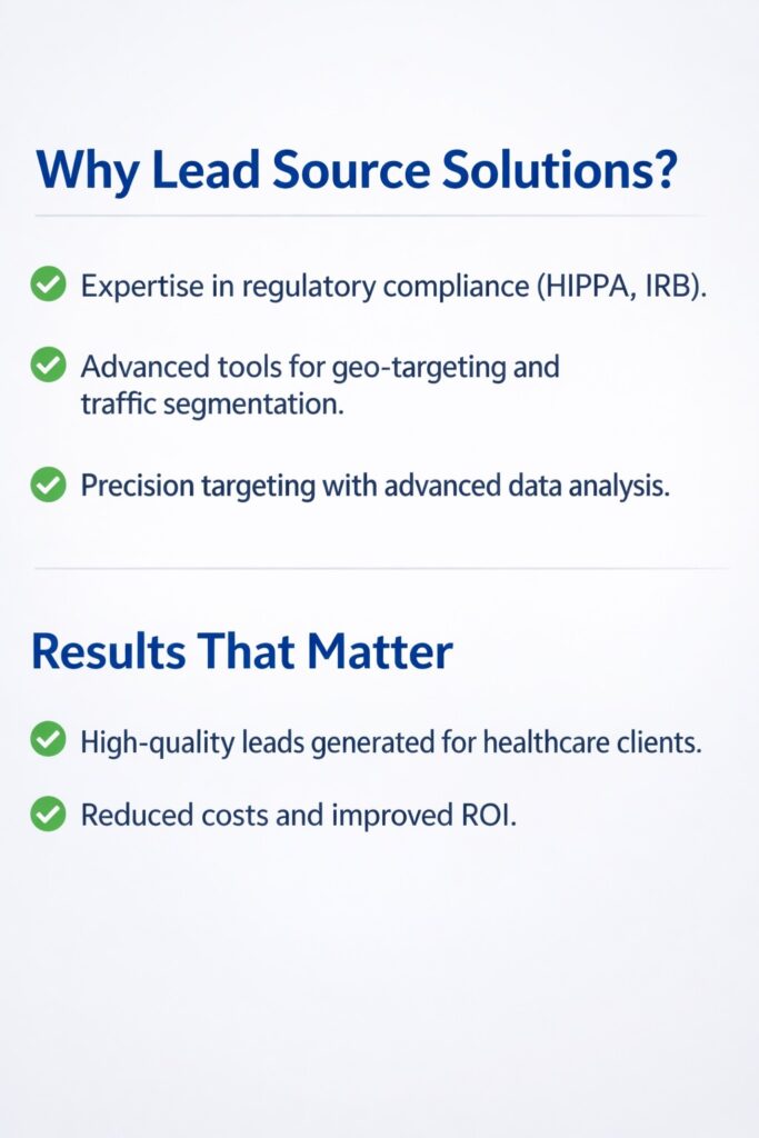 We support clinical research organizations operating in regulated, data-sensitive environments. Our lead intelligence solutions help connect clinical teams with relevant audiences while maintaining accuracy, compliance, and performance accountability.