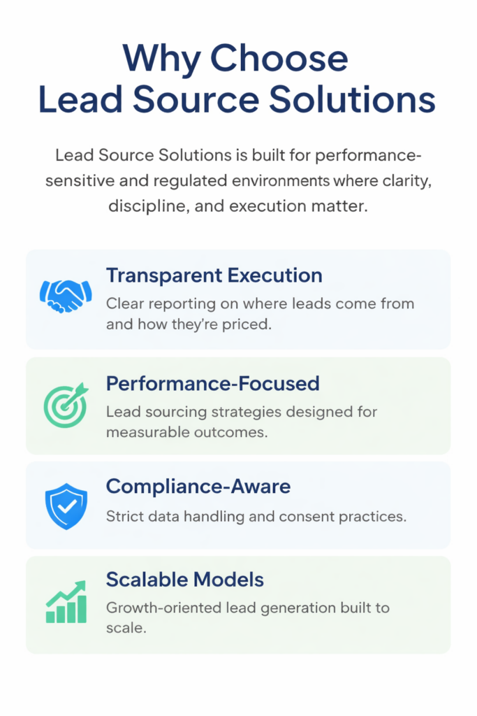 Partner with Lead Source Solutions to improve lead quality, optimize acquisition spend, and scale responsibly in performance-sensitive environments. A structured review is available for organizations evaluating lead generation before increasing budgets.